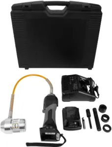 Akku-Compact Flex®: In narrow angles, as well as in small or equipped control cabinets, the 2,5 kg lightweight Akku-Compact Flex® is the save option to a saw or a drilling machine – because no metal chips are generated during the punching process. The battery is ready for use again after a charging time of only 30 minutes.